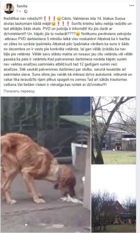 "Собака передана в руки других людей. Собаку отвезли в приют для животных Ulubele. Вчера вечером она приехала в Ulubele. Наш инспектор [ПВС] присутствовал при всем процессе. В данный момент собака от хозяев в Цесисе уехала. Они [хозяева] добровольно согласились на это. Мы [ПВС] сказвли новым хозяевам, что на них ляжет вся ответственность за собаку – должно быть обеспечено лечение, которое определил ветеринар", - заявил представитель ПВС Марцис Улманис.