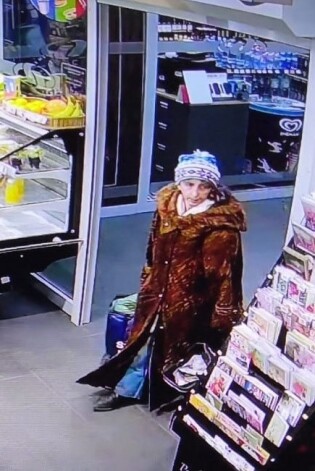 Была одета: в коричневое пальто, голубые брюки, пеструю блузку.