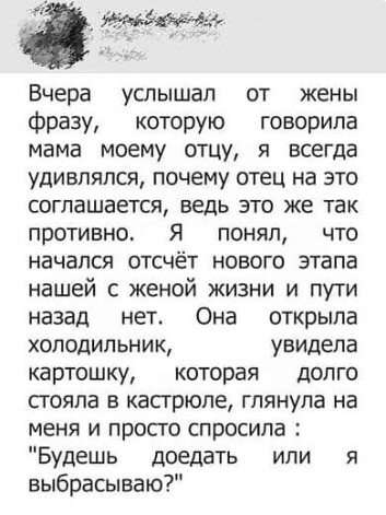 - Оставь, дорогая, посуду, сегодня восьмое, домоешь завтра.