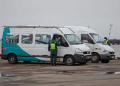 Пассажиров парома в Лиепайском порту встретили сотрудники Государственной пограничной охраны. Тех, кто был без транспортного средства или прибыл на легковом автомобиле, проводили в здание пограничного контроля, где медики Службы неотложной медицинской помощи (NMPD) и Центральной лаборатории проводили тесты на Covid-19.