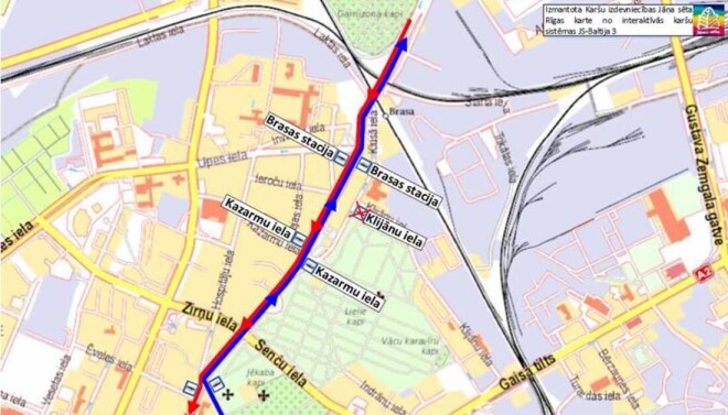 • по направлению от улицы Абренес будут курсировать по маршруту до улицы Миера, дальше по улице Миера, через Брасовский мост, по улице Гауяс и дальше в Межапарк по маршруту;