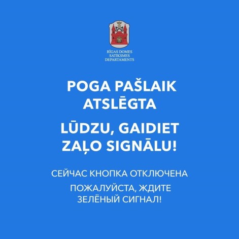 Департамент сообщения Рижской думы обращает внимание жителей на то, что кнопки вызова будут отключены на неопределенное время и пешеходов призывают дожидаться зеленого сигнала светофора.