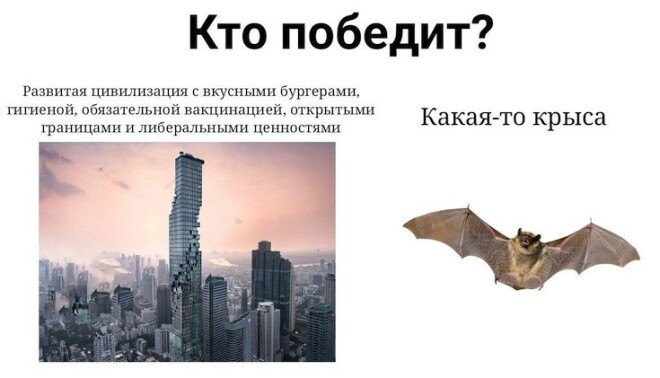 Я сегодня посмотрел на живую летучую мышь. Тот, кто догадался это съесть, был серьезно болен еще до коронавируса...