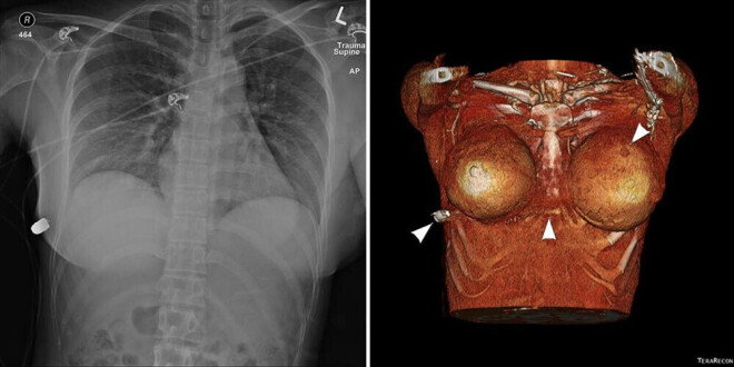 Врачи внимательно изучили компьютерную томографию пациентки и сделали вывод, что, если бы у нее не было имплантов, то пуля должна была пройти прямо через ее грудную стенку и, возможно, поразить ее сердце.