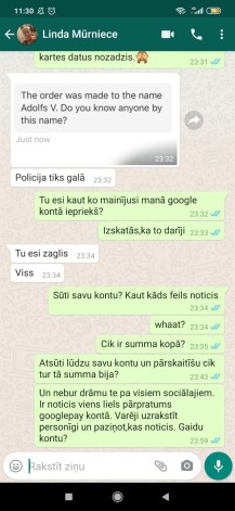 Он не скрывает своего возмущения за то, что Линда Мурниеце даже не попыталась решить это странное недоразумение между ними, а сразу сообщила об этом публично. Когда Кристапс Валтерс, заметив запись Мурниеце, обратился к Линде с вопросом, почему она говорит, что он украл данные ее банковской карты, и спросил, изменила ли Линда каким-то образом его Google Pay, ответ Мурниеце был лаконичным: "Полиция разберется. Ты - вор! Все!"