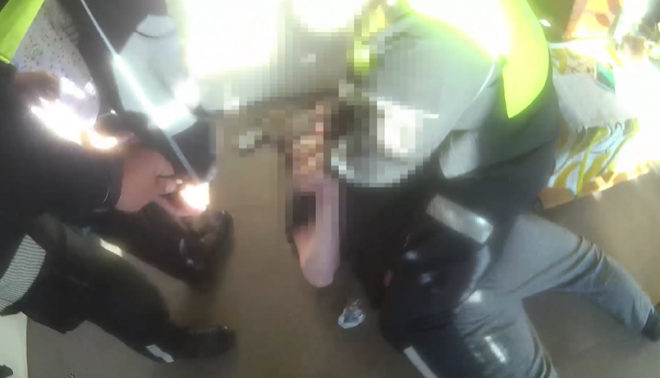 В течение нескольких минут полицейские приехали на место происшествия, где встретились с вызвавшей их женщиной и ее детьми. "Я сняла, как он обругал меня, а потом пневматическим оружием в нас стрелял. И так регулярно. Он напивается и стреляет пневматическим оружием", – объяснила женщина.