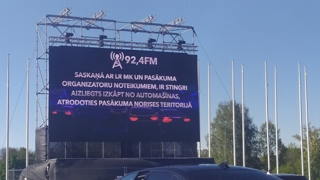 Чтобы посмотреть, как это происходит в Латвии, на одно мероприятие пришли журналисты Rīgas Viļņi. Выбор пал на Drive in Kino на стоянке выставочного центра Кипсалы. Так как это приключение захотелось показать и детям, то и о выборе фильма много не пришлось думать – "Тайная сила Мосли" подойдет. Взяв закуски и напитки, отправились. Въезд происходит достаточно быстро – кто первый заехал, тот останавливается ближе к большому экрану. Но за час приезжать не надо, за десять минут до начала сеанса будет достаточно. Билет сканируют через окно, персонал любезно показывает место, где разместить машину, физического соприкосновения нет. Машин на самом деле много, несколько десятков автомобилей точно.