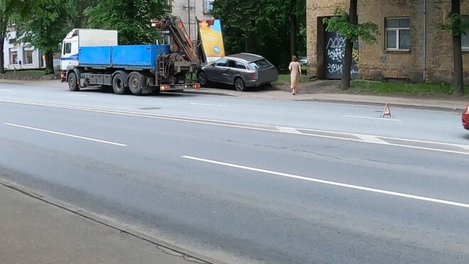 В четверг, 11 июня, на улице Калнциема, недалеко от перекрестка с улицей Дрейлиню, произошла авария грузовика и "легковушки", сообщает передача Degpunktā на TV3.
