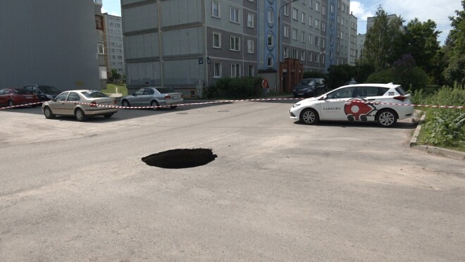 Как сообщалось, 5 июня в центре города, на улице Гертрудес, в огромную яму упала BMW (водитель Mercedes смог выбраться), а в пятницу, 12 июня, в Зиепниеккалнсе в похожую ситуацию попала темно-зеленая Audi.