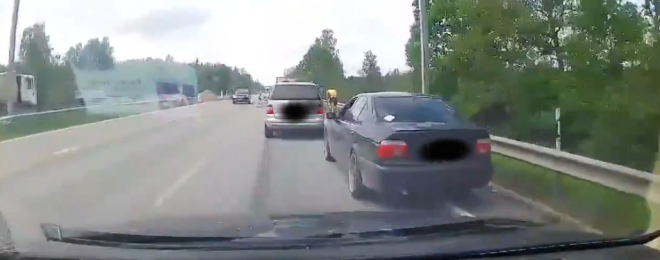 В воскресенье, 14 июня, на дороге A8 (Рига-Елгава) агрессивный водитель угрожал безопасности дорожного движения.
