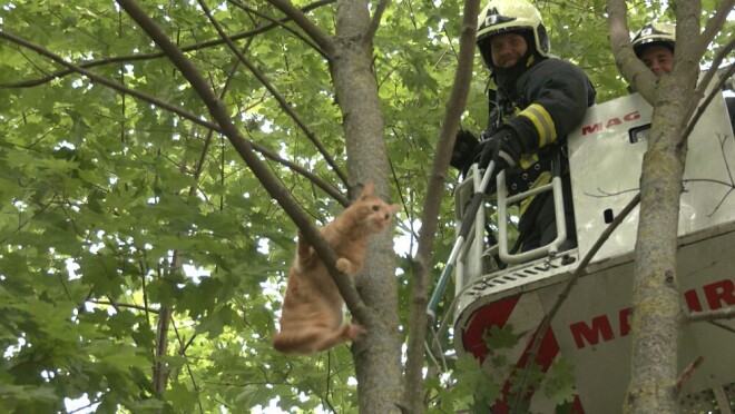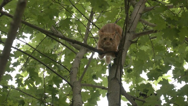 Когда во дворе рижского дома на ул. Илукстес, 103, въехал пожарный автомобиль с автолестницей, жильцам показалось, что на крыше самоубийца или констатировано возгорание. Но уже через минуту, когда спасатели подняли автолестницу в сторону дерева, стало ясно, что все это ради кота, о чем попросил хозяин животного.