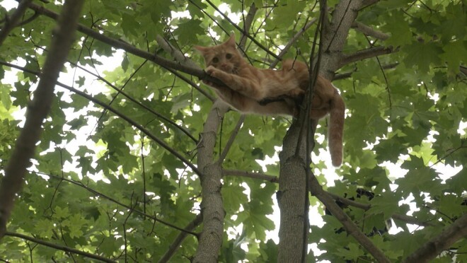 Пожарные быстро закончили - испугавшийся кот сам придумал, как спуститься. Для спасателей такие ситуации - повседневность, и большая часть вызовов поспешны.