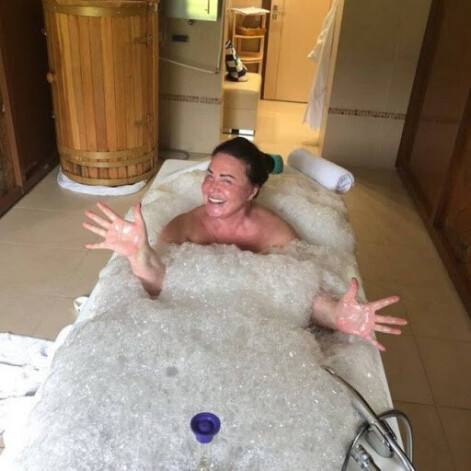 Или снимки из ванной комнаты. Например, недавно певица запечатлелась нагишом в пене - объяснила, что принимает специальную ванну для заряда энергией. «Пантовые ванны придают сил и заряжают позитивом для плодотворного рабочего сезона!», - прокомментировала снимок Бабкина.