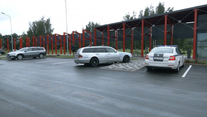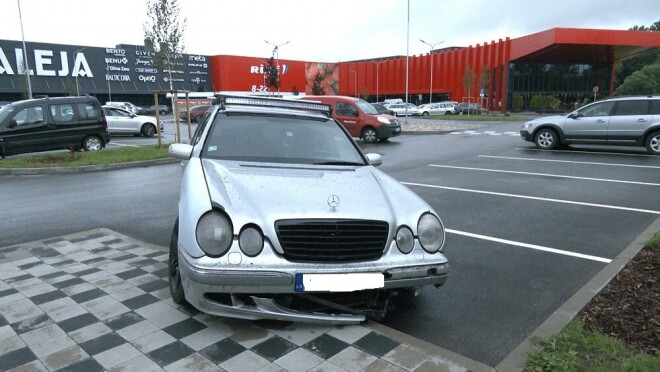 Судя по всему, водитель оказался на территории супермаркета, приехав со стороны Олайне. Mercedes свернул с дороги и въехал в канаву. Вызвав впечатляющую аварию и повредив масляный поддон, мужчина не остановился, а выжал газ в пол и по лужайке въехал на холм, на территорию автостоянки.