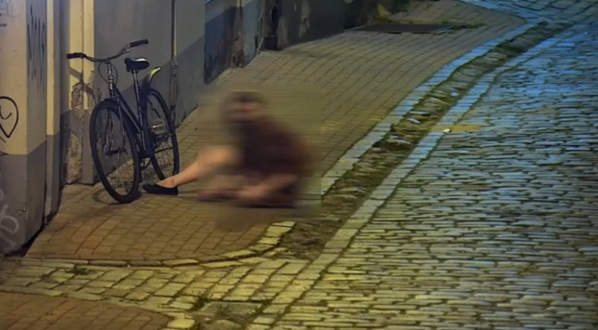 Видео: велосипедистка в Старой Риге слишком пьяна, чтобы подняться с земли