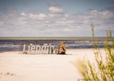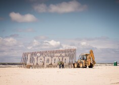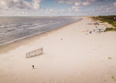 Надпись "Лиепая" на пляже, созданная почти за 30 тысяч евро