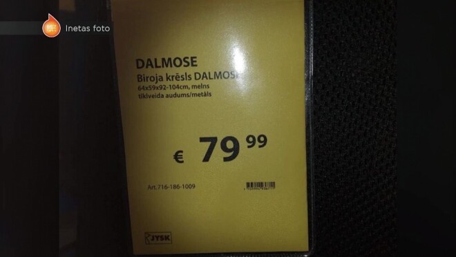 Команда Bez tabu заметила в магазине Jysk, что на момент создания сюжета стул стоит 49,99 евро, цена на красном ценнике с надписью – суперцена. Защитники прав потребителей указывают, что одна сеть в разных магазинах может менять цены. В связи с этим могут отличаться и акционные цены.