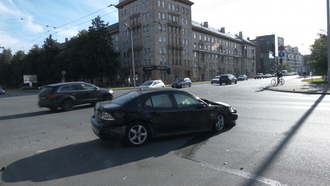 Инцидент произошел на улице Кришьяня Валдемара у пересечения с улицей Зирню. В аварию попали легковые машины марок BMW и SAAB, а виновником, скорее всего, будет признан молодой человек на серебристом автомобиле, поскольку, как он сам признает, он не пропустил SAAB, ехавший через перекресток на зеленый свет.