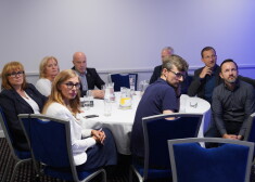 Члены партии "Для развития/За!"/"Прогрессивные" в ночь после внеочередных выборов в Рижскую думу