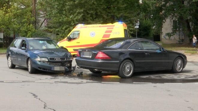 Около полудня на перекрестке улиц Илукстес и Стирну в очередной раз завизжали шины и послышался треск разбитого стекла. Водитель Audi, судя по всему, не заметил знак “уступите дорогу” и въехал в бок Mercedes-Benz, который двигался по главной дороге.