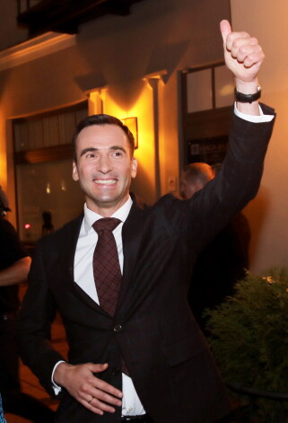 Члены партии "Для развития/За!"/"Прогрессивные" в ночь после внеочередных выборов в Рижскую думу