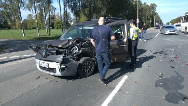 Виновник аварии - пожилой человек на Renault Kangoo. Андрис считает, что авария произошла из-за того, что водитель переключил внимание на свой смартфон.
