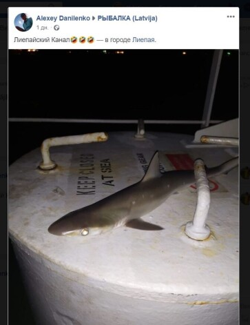 Лиепайчанин Алексей опубликовал на странице латвийских рыболовов в Facebook фото с якобы пойманной в Лиепайском канале акулой.