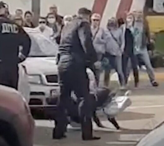 «Покраснело ухо и было разбито колено». Белорусский милиционер сшиб женщину с ног ударом кулака за то, что она его снимала