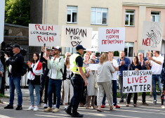 Пикет солидарности с протестующими возле посольства республики Беларусь в Риге 12 августа 2020 года