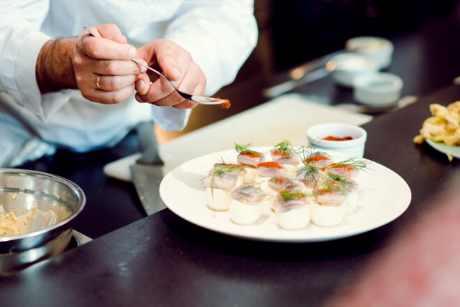 Сирмайс предложил фаршированные яйца с горчичным соусом и домашней селедкой.