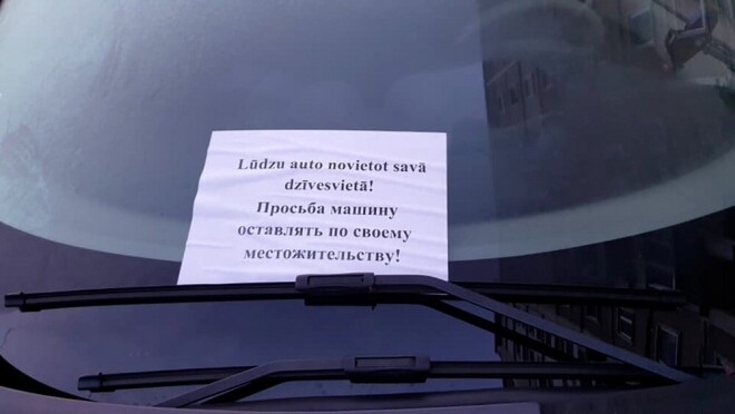 Такая ситуация произошла и в Зиепниеккалнсе, на ул. Брукнас, 14, где житель здания поздним вечером на машинах соседей оставил предупредительные записки с просьбой ставить автомобили только по своему месту жительства.