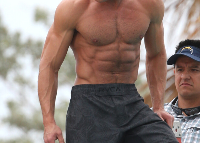 Зак Эфрон на съемках фильма «Спасатели Малибу»