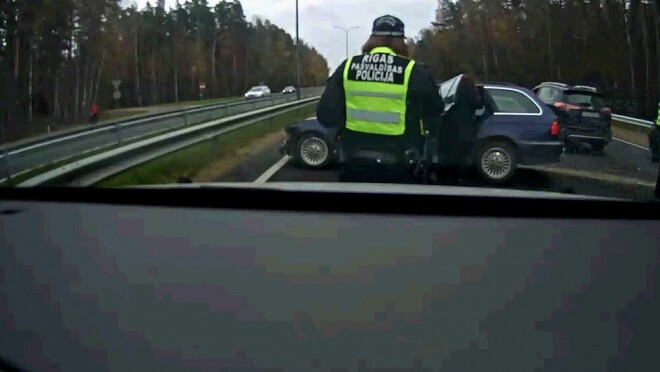 В первой половине дня понедельника, двигаясь по Карля Улманя гатве, в месте, которое принято называть Юрмальским шоссе, один из экипажей столичных полицейских заметил только что произошедшую аварию.