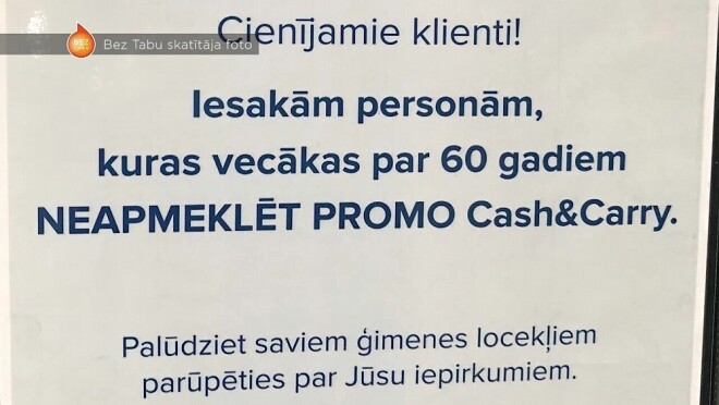 Покупатели недоумевают, почему в магазине «Promo Cash & Carry» не ждут людей старше 60 лет? Дискриминация ли это, выясняла передача Bez tabu на TV3.