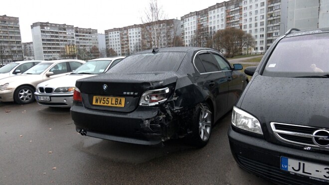 "Машина BMW ехала с той стороны. Водитель хотел повернуть налево к Maxima. Навстречу ехала машина, он остановился, но, как говорят полицейские, не включил поворотники. Сзади двигался полицейский автомобиль с включенными огнями и сиренами. Проезжали мимо. Так как он резко остановился и не включил поворотники, полицейские не успели среагировать. Врезались ему в заднюю часть и поехали дальше. Боком задели первую машину, подтолкнули ее на четыре метра вперед", - рассказывает Degpunktā мужчина.