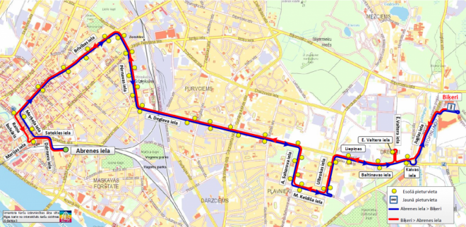 На маршруте появилась новая остановка «Бикери», изменено название маршрута на «Улица Абренес-Бикери».
