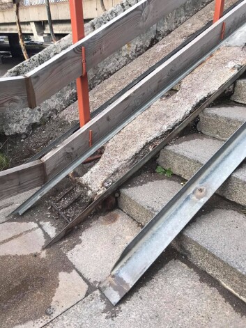 Хотя лестница на мосту выглядит пугающе, представитель Департамента сообщения утверждает, что она для пешеходов безопасна. Бетонные конструкции Земитанского моста в зонах, где существует риск их отделения, отремонтированы или разграждены.