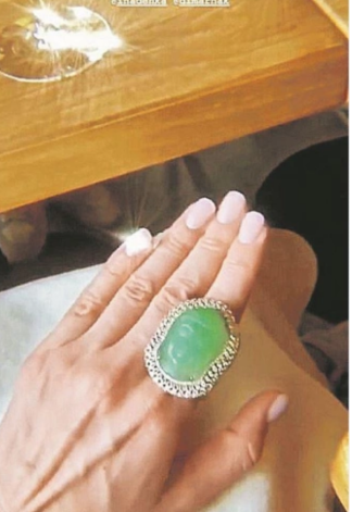 А некоторые балуют себя и сами. Екатерина Варнава порадовала себя весьма оригинальным золотым кольцом, сделанным на заказ, — зеленый нефрит обрамлен россыпью бриллиантов.