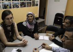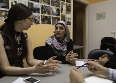 Сирийские и эритрейские семьи в центре беженцев "Муцениеки"