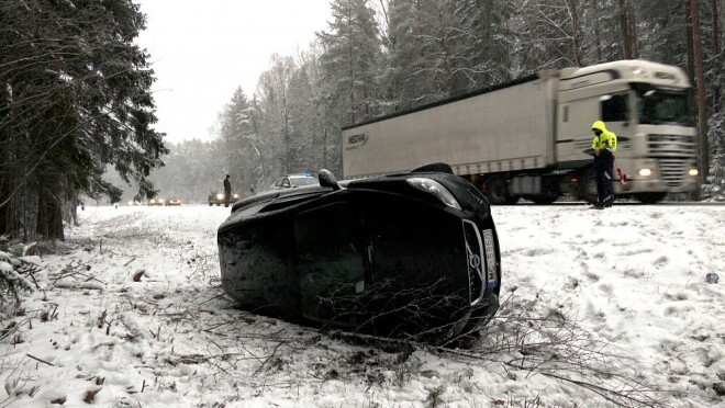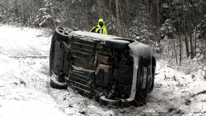 "Со стороны Плаканциемса один, так сказать, очень "хороший" водитель вылез прямо на дорогу так близко, что я никогда бы не подумала, что он вырулит. Избегая столкновения, я объехала его, а затем, из-за скользкой дороги, я въехала в канаву и опрокинулась", - говорит передаче водитель Volvo Линда.