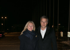 Нил Ушаков с супругой Иветой Страутиней-Ушаковой по дороге на концерт Григория Лепса