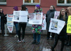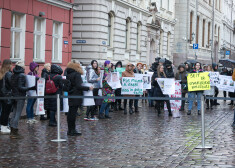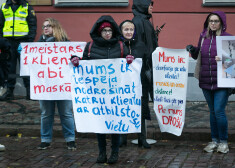 Пикет мастеров салонов красоты у Сейма против запрета работать во время ЧС