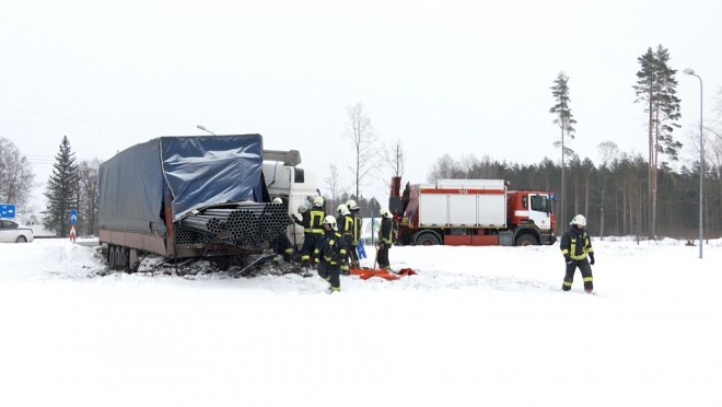 Во вторник, 9 февраля, на ротационном кругу возле Тинужи в аварию попал водитель грузовика из Украины. Лед на дороге тут был не виноват - скорее всего, причина в затумаменном зрении и неясном мышлении шофера, сообщает передача Degpunktā на TV3.