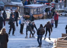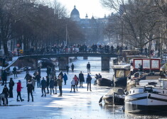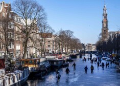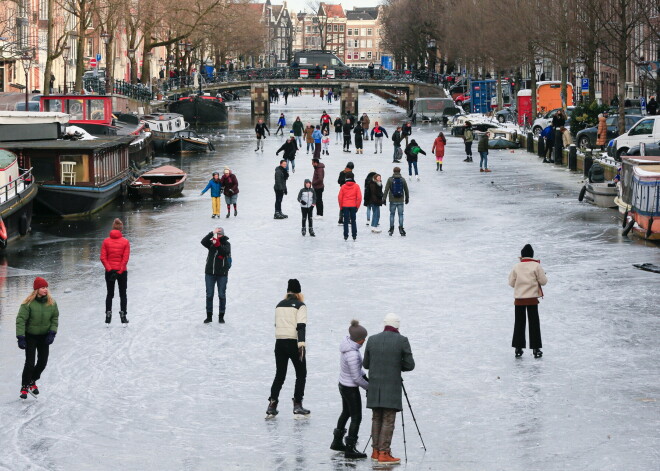 В субботу десятки людей скользили по поверхности исторического амстердамского канала Принсенграхт. Там впервые с 2018 года можно кататься на коньках.