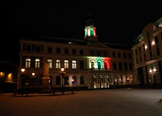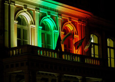 В День независимости Литвы Рижская дума окрасилась в цвета литовского флага