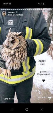 Работники Государственной пожарно-спасательной службы (ГПСС) часто спасают животных, но обычно это кошки на дереве или провалившийся в болото или под лед скот. Недавно была непривычная ситуация – в тихом центре Риги понадобилось помочь сове.