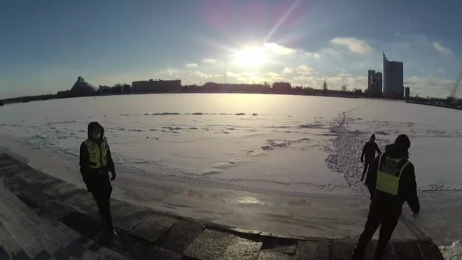 Недавно сотрудники Рижской муниципальной полиции получили сообщение свидетеля, что напротив Большого Кристапа на льду Даугавы, в десятках метров от берега, видели несколько человек. Поэтому в целях безопасности на место происшествия были отправлены ближайшие экипажи полиции - как стражи порядка, так и специально обученные инспекторы-спасатели.