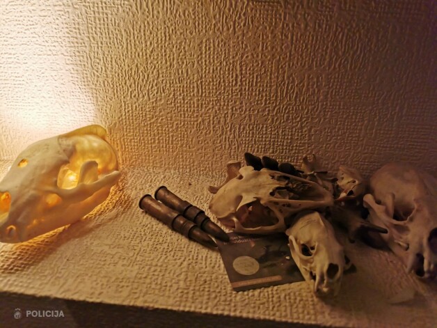 Пес во время проверки указал на шкаф. При этом обнаружено, что у шкафа создана двойная стена, в которой спрятаны различные виды оружия и патронов. В общей сложности найдено и изъято еще 285 патронов разного калибра, похожий на пистолет предмет, предмет, похожий на охотничью винтовку, составные части огнестрельного оружия, устройства, которые, возможно, предназначены для изготовления патронов.