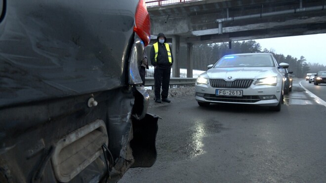 «Ехал по первой полосе, человек врезался в меня сзади, его немного занесло, и, как он ехал на большой скорости, так и занесло его», - рассказывает водитель Toyota Лаймонис.