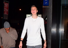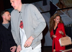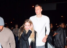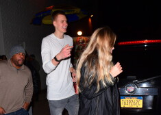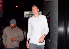 Кристапс Порзингис с девушкой покидает ночной клуб в Нью-Йорке